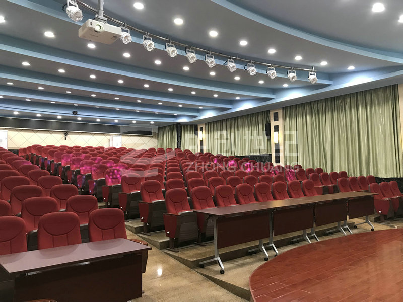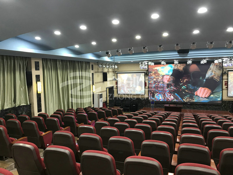 深圳市福田區華強職業技術學校綜合樓禮堂觀眾區面積約2000平方米,其中寬約35米,深約55米,空高約24米,頂棚裝修后凈高約為27米。禮堂舞臺臺口寬約17.5米,高約5.8米,深約14.8米。