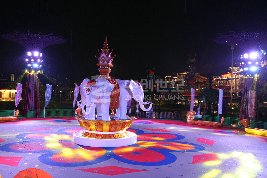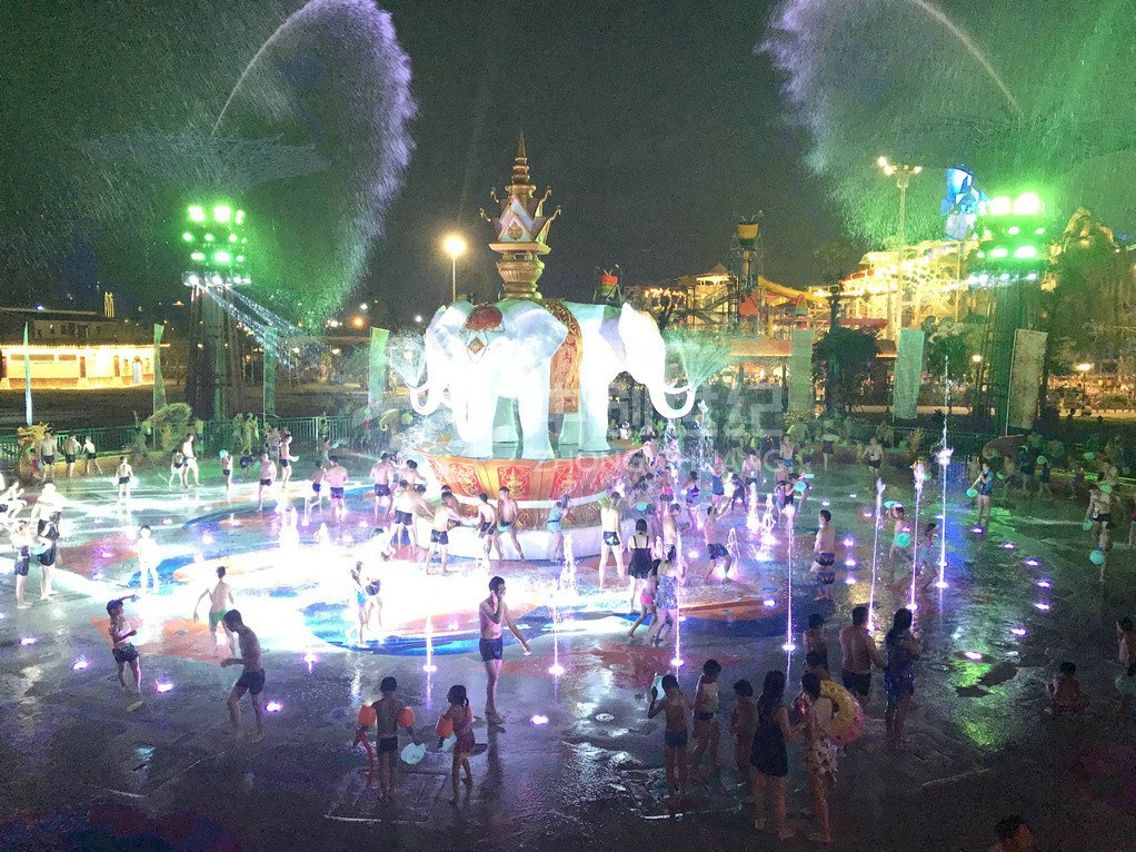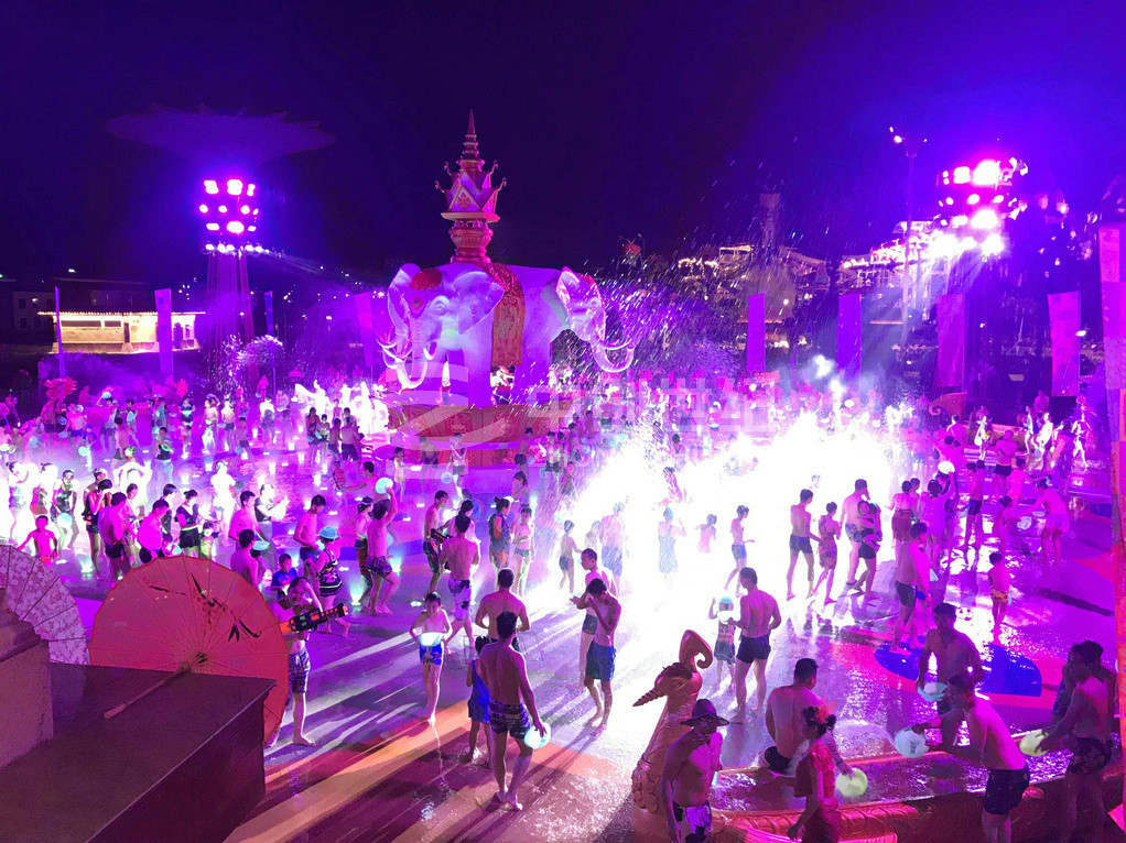 潑水廣場(chǎng)是玉林克拉灣斥資1500多萬(wàn)元建造的廣西大型專業(yè)娛樂(lè)項(xiàng)目。廣場(chǎng)潑水面積超1200平方米,運(yùn)用傣族基本元素,并結(jié)合當(dāng)?shù)匚幕?,極具民族風(fēng)情。