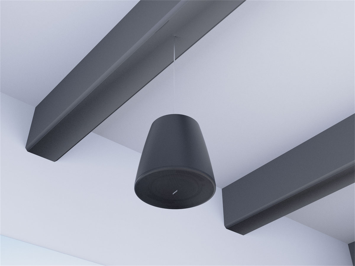 ● 垂吊揚聲器采用的嵌入式單點懸吊系統可將緊固件隱蔽起來,并且還可用于容納和隱藏檢修回路以方便檢修,從而打造出開放、精美的外觀