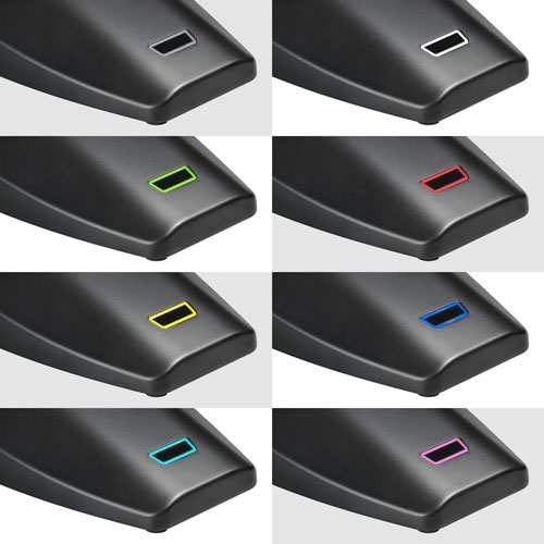 ② 臺(tái)架供電模組和鵝頸管組件均內(nèi)置RGB LED燈,可指示話筒的開/關(guān)狀態(tài)。